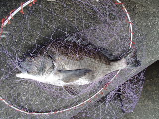 午後は2時頃から6時過ぎまで坂尻でチヌ様をねらいました。こっちは完全にベタベタスケスケで波気ゼロでした。こういう状況でどんな釣りになるか楽しみでしたが、フグ軍団の鉄分補給に貢献する結果となり、通りがかりのヤル気のあるチヌ様がひとつ釣れただけでした。