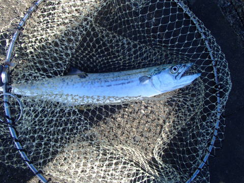 昼飯食べて休憩したりしなが海況が変わるのを待ちました。そして2時半過ぎ、いい感じになってきたと思ったら、義兄の竿が曲がったー。