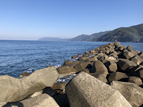 4時20分に自宅を出て、7時半ごろとりあえず大比田方面に向かって走っていると永坂さんから電話があり、見た感じの海況を知らせました。一宮あたりにいる永坂さんは本日も坂尻に行って渚釣りをするとのこと。
