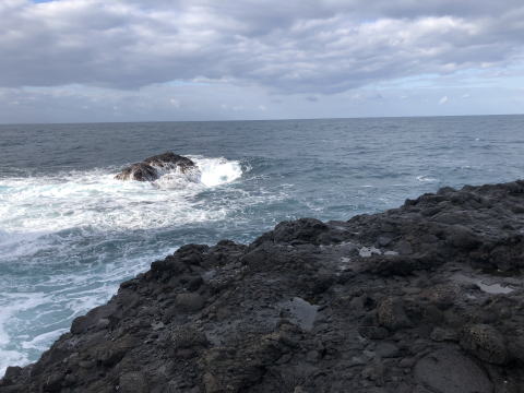 これが乗った磯。うねりが大きく場所によっては時々波が這い上がってくる状況でした。
